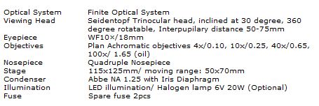 LB-203 Trinocular Biological Microscope with Finite Plan Optical System, Plan Achromatic Objectives and LED Illumination. LB-203 Trinocular Biological Microscope with Finite Plan Optical System, Plan Achromatic Objectives, Quadruple Nosepiece, and LED Illumination is economic, practical and easy to operate. LB-203 Trinocular Biological Microscope with Finite Plan Optical System, Plan Achromatic Objectives, Quadruple Nosepiece, and LED Illumination adopts LED illumination, which saves energy and have long working life, it is also very comfortable for observation. LB-203 Trinocular Biological Microscope with Finite Plan Optical System, Plan Achromatic Objectives, Quadruple Nosepiece, and LED Illumination is widely used in educational, academic, agricultural and study field. Rechargeable battery is optional for outdoors operation or places that power supply is not stable.