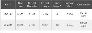 The 4 passage LT Series rotary unions can be used to transfer air, vacuum and fluid to rotating and indexing equipment. All LT Series rotary union designs feature dual precision sealed ball bearings for consistent performance and long seal life.