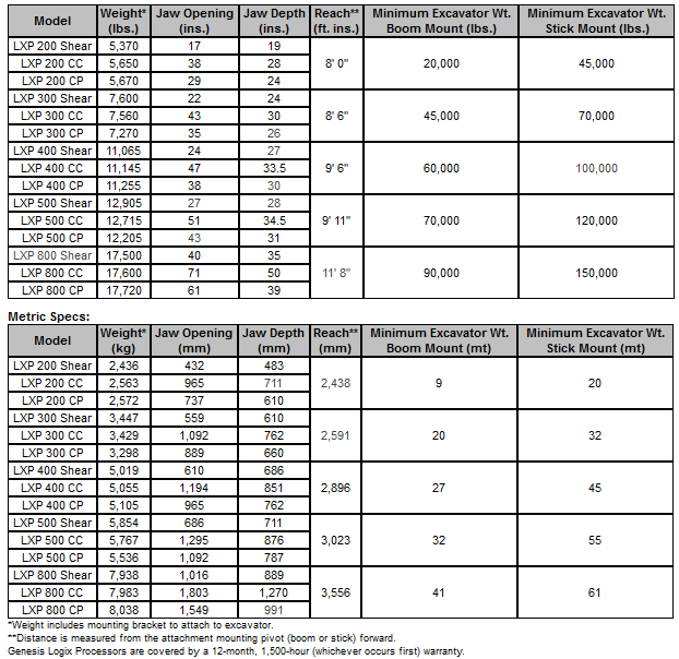 Designed to fit 20,000 lb. to 150,000 lb. excavators, the Genesis Logix Processor`s industry-leading quick-change jaw design provides powerful multiprocessor capabilities. Attachments include pulverizer, concrete cracker and shear jaws that can be changed out in 15 minutes to meet any jobsite need.