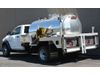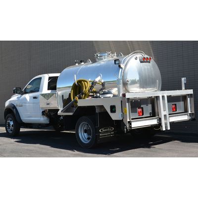A quick opening manway is located on the waste tank and a side ladder leads to the top manway for easier inspection, repair or cleaning. A round sight glass on the waste tank and sight tube on the fresh shows the level in each compartment. The catwalks and two cabinets are made of strong 1/8” inch aluminum that will maintain a clean, polished appearance. Each side cabinet has a keyed lock and shelving to provide a dry storage area for supplies. For driver safety, a DOT safety equipment package is provided and includes a flag and reflector, first aid kit and fire extinguisher.