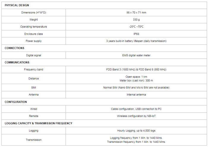 - Model MINI-N series - NB-IoT Datalogger