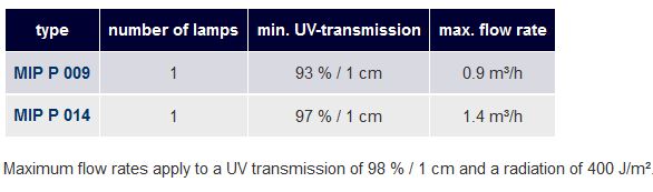 Stainless steel reactor (material 1.4301) outside electropolished, with quartz tube and UV low pressure lamps (16 W to 25 W). Incl. Switchbox made of thermoplastic and optional UV monitoring unit. Standard flanges according DIN 2642, 2632; DIN 2999 (other flanges optional). Vent and bottom outlet valve sealed with PTFE. Simple handling and maintenance. Modular installation possible. Variable in connections and their arrangement. Horizontal and vertical mounting.