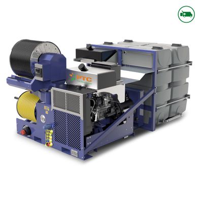 Hybrid Technology: Vanguard technology designed for cleaning pipes and drains, driven by an hybrid motor pump (diesel + electric) to achieve maximum performance in terms of efficiency, fuel consumption and silence. The equipment, in addition to the combined mode, is able to work in Full-Electric mode (Full-Electric working autonomy depends on the amount of batteries installed).