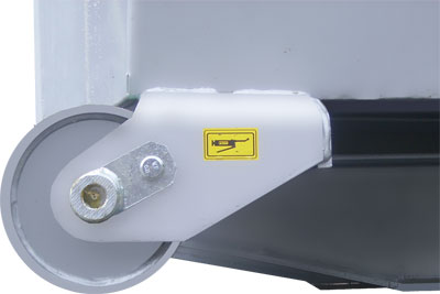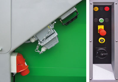Operation: Phase adapter and connection for remote control are supplied as standard. The comfort package: automatic „container full“ warning sent by SMS so container can be collected in good time, electric cover opener and buttons for operating lift / tilt feed mechanism.