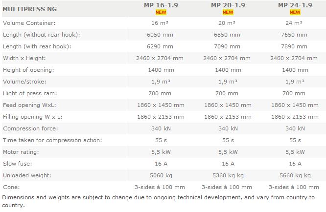 MP 1.9: 1450 x 1860 mm => 1,9m³/stroke