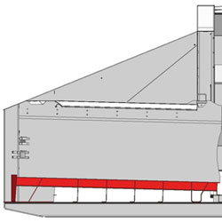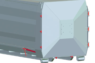 Sloping press floor: Also qualifies the press container for use with wet waste. Reduced susceptibility to repairs in the press chamber as liquids remain in the container. The technology area is clean.