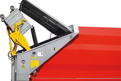 The double return stop due to retaining claws and a 152 mm high step (trash holder) combined with the 334 mm retraction depth of the press-ram keep the press chamber free and constantly available.