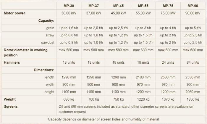 Model MP-30/MP-37/MP-45/MP-55/MP-75/MP-90 -Hammer Mills
