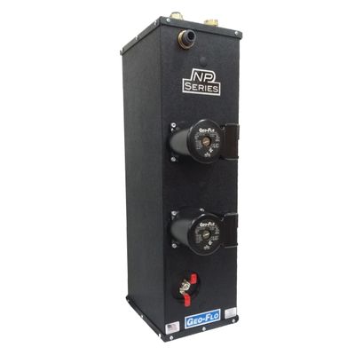 The NP Base (NPB) is a price competitive, base level, non-pressurized flow center useful for contractors that utilize internal headers or prefer to install flush valves separate from the flow center. The NPB includes features of our standard NP line including three-speed UPS26-99 pumps, a threaded sealing cap, pressure & vacuum relief, and a durable ABS plastic cabinet. While the NP and NP Plus include 3-way flush and isolation valves with Flo-Link double O-ring connections, the NPB uses simple isolation ball valves and 1” swivel union connections. The NPB also features front or top plumbing connections on the discharge of the pump for installation flexibility.