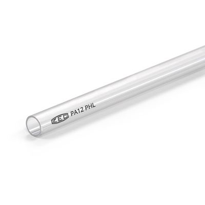 PA12 PHL tubing: plasticized polyamide 12, heat and light stabilized. Reduced moisture absorption. Black color recommended for outdoor applications.
