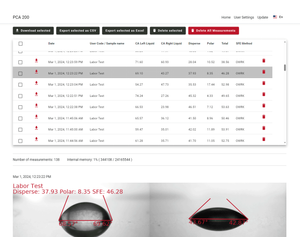 The PCA 200 portable contact angle goniometer offers three options for control, device settings and advanced analyses. The integrated device computer allows autonomous measurements, the user-friendly browser-based interface enables to set device parameters and to export measurement results, the dpiMAX software makes advanced analyses and a straightforward data management possible.
