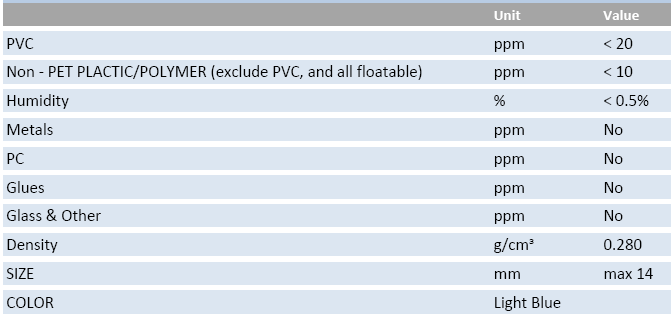 Model PET -Flakes Light Blue Primary Plastic Raw Material