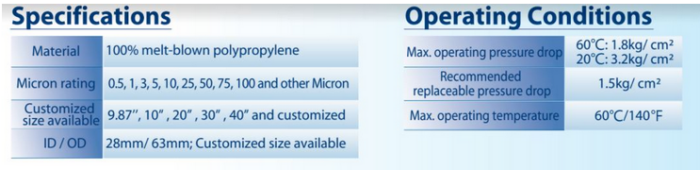 Four-layered structure delivers high contaminant-holding capacity and a long-service life. Fine polypropylene fibers provide high removal efficiency. 100% chemical-resistant polypropylene. The PPM is manufactured by thermal bonding without the use of adhesives or binders. Certificated by FDA CFR Title 21.