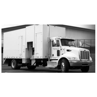 The Gripper Tipper lift system can easily handle any bins up to 98 gallons, and it will also stow a bin on the lift inside the truck. The Automated lift hood opens on its own at the start of the shred job and closes after stowing the lift in the travel position.