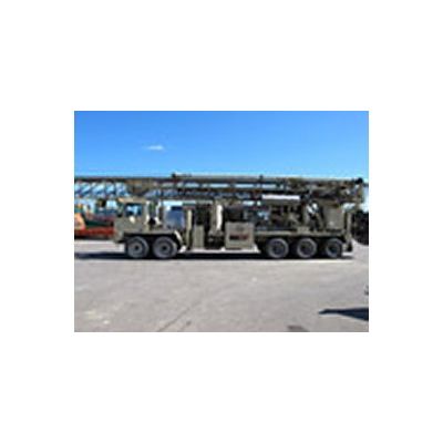 This Atlas Copco RD20 drill comes equipped with an Ingersoll-Rand HR 2.5 Air Compressor. It also includes: a Floating Sub, 60-gallon Oiler, Bean 1000 PSI Water Pump, Diesel Fired Deck Pre-heater and a Hammer Tooling Kit. The drill comes mounted on a 2007 Tridem Crane Carrier with a CAT C13 380 HP Engine.