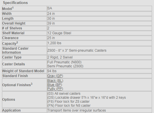 - Durable 12 gauge steel shelves & caster mounts for long lasting use.
