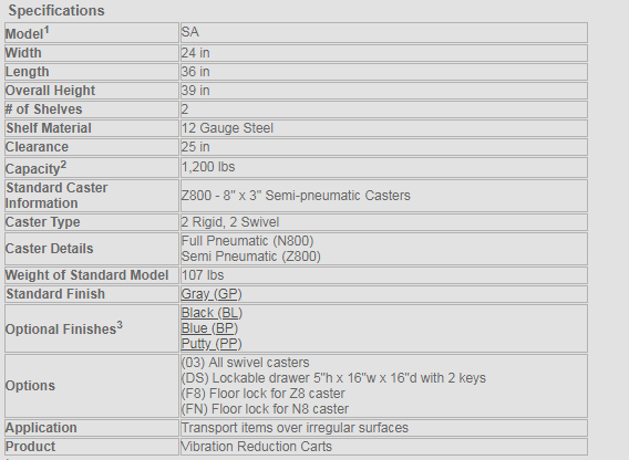 Model SA236 -Vibration Reduction Carts- 2 Shelves