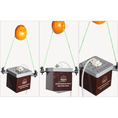 On suspending the reactor one foot below the water level on a float, and operating the airlift pump, water enters the reactor through the perforations on top of the black lid, passes through the cartridge and flows out. When water comes in contact with the immobilized bacteria on the surface of the beads, nitrification takes place and dissolved ammonia in the water is converted to nitrates and subsequently into elemental nitrogen and oxygen. The framework of the inner cartridge is made in such a way that larvae, plankton, and food particles when enters, pass out through the airlift pump without mutilation and damage.Stringed Bed Suspended Bioreactor contains 1001 beads with a surface area > 684cm2.