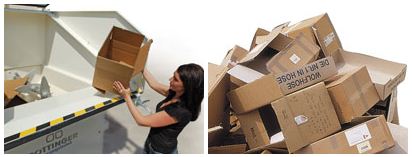 Cardboard and paper: FThe screw compactor is the optimum technology for compacting bulky cardboard and large volumes. The large filling opening and efficient intake system guarantee fast, trouble-free processing. Optimum intake and compaction of whole or flattened cardboard.