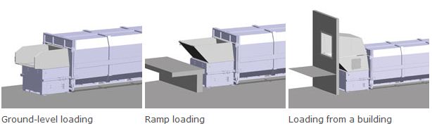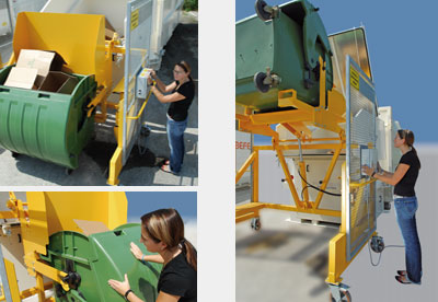 The machine can be fed manually or by an elevator-tilter system, from ground level or from a ramp, or conveniently from the building via a chute. The screw compactor`s small footprint means it can be easily tailored to the operating site.
