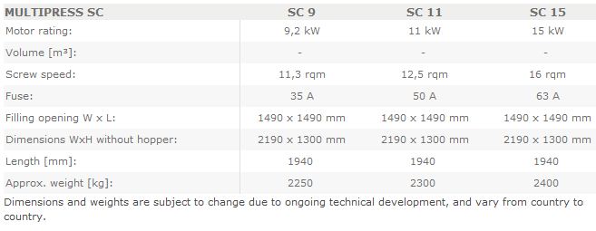 Model SC 9 / 11 / 15 -Stationary Multipress Screw Compactor