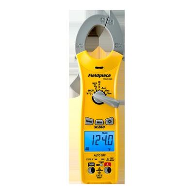 True RMS, Volts AC/DC, Temperature, Bright backlight. The SC260 Compact Clamp Meter is a great meter for testing HVACR electrical measurements. It includes True RMS measurements so you can test variable frequency drives more accurately, along with temperature in both Fahrenheit and Celsius. The SC260 also features a backlight display for reading measurements in poorly lit places, and a sturdy swivel magnet for hands free measurements. The SC260 helps you save time with the new Auto Select mode. Simply set the dial and connect your leads, the clamp meter will automatically select the appropriate measurement depending on what it detects. While the high temperature resistance allows you to move from a cold freezer to a hot rooftop and get accurate temperature measurements that lesser thermometers cannot measure properly.