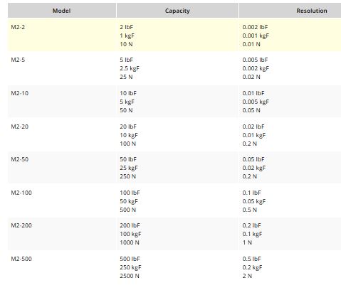 Series 2 digital force gauges are designed for basic tension and compression force testing applications up to 500 lbF (2500 N). Peak tension and compression readings are reliably captured via the gauges` ±0.5% accuracy and 500 Hz sampling rate. A backlit graphic LCD displays the current, peak tension, or peak compression reading. The gauges are overload protected to 150% of capacity. An ergonomic, reversible aluminum housing allows for hand held use or fixture mounting, rugged enough for applications in both production and laboratory environments.