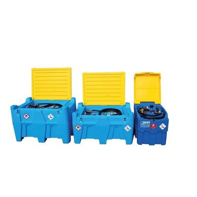 TRANSPORTABLE TANK IN POLYETHYLENE TOTAL EXEMPTION ACCORDING TO ADR 1.1.3.1c. STANDARD AND PICK UP VERSION. Complete with: Filling cap, safety valve. Nominal capacity transfer unit 40 l / min 12 Vdc on request 24 Vdc. Manual block dispensing gun and 4 mt. dispensing hose. Inlets for full lifting with forks. Handles for vacuum lifting. Padlockable / lockable top cover. Mechanical level indicator standard on all models over 200 liters (optional for PL 200)