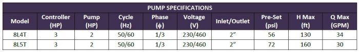 The SGW series systems include a 3hp constant pressure inverter controller and 2hp centrifugal pump capable of 34 GPM at 56 psi as standard.