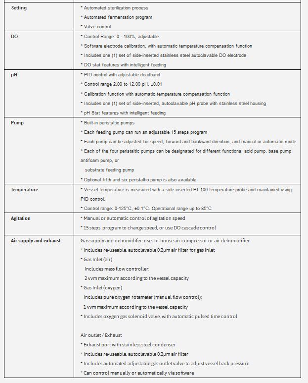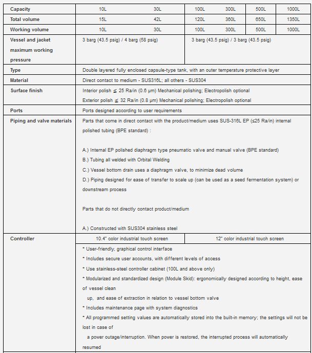 - Wide range of vessel selection, from 10L to 2000L working volume