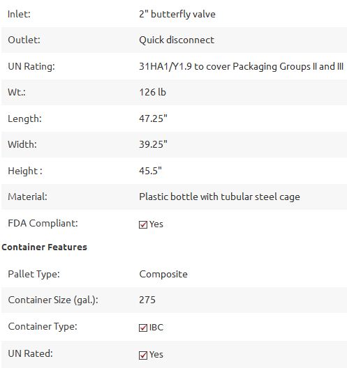 - Model SKU: GC275 - IBC 275 Gallon Tank