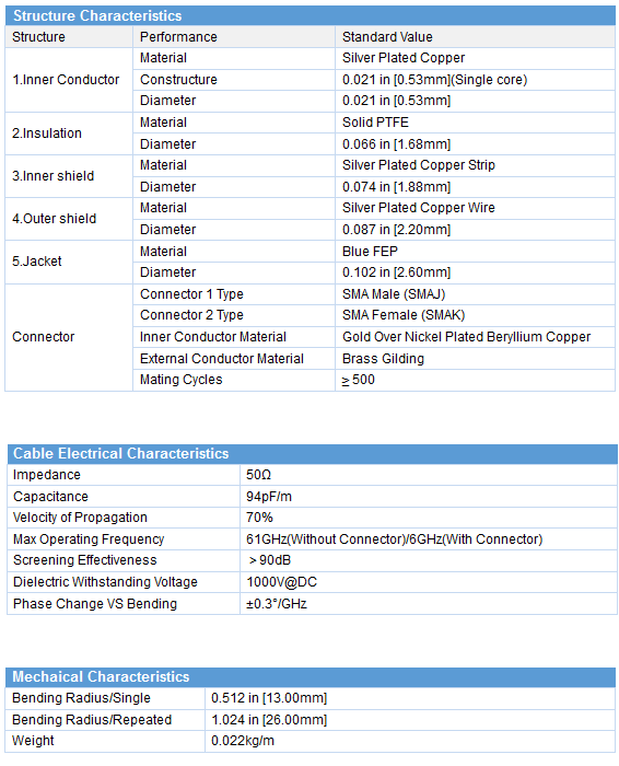 - Cable Type: XQY-CLC260-SMAJ-SMAK-6G