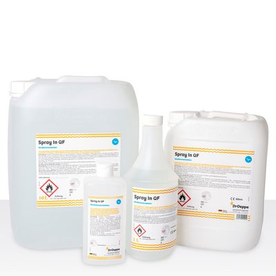 Spray In QF is a ready-to-use, alcoholic, aldehyde- and QAC-free spray/wipe disinfectant solution for the disinfection of alcohol-resistant surfaces of non-invasive medical devices and surfaces in the medical environment, food sector, public facilities and industry. Eexcluded are surfaces of instruments or semicritical and critical medical devices. For professional use only. VAH-, IHO-listed, bactericidal, yeasticidal, tuberculocidal, mycobactericidal, active against enveloped viruses and limited spectrum of virucidal activity effective
