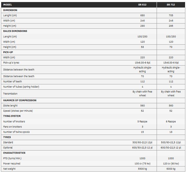 Model SR 612 - SR 712 -High Density Big Baler