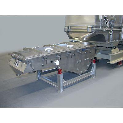 For fractioning or protective screening with 1 to 3 decks and a low headroom. Closed design, easy to clean. Screen decks with manual or pneumatic tensioning devices for the screen linings. Twin vibrating motor drive.