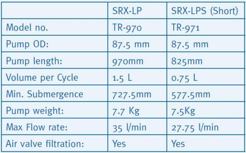 Landfill Pumps for Leachate Pumping and Gas Condensate Pumping in Landfills. The SRX LP is an air-powered pump used to extract leachate or gas condensate at variable rates equal to the well recharge rate. Pump flow rates are up to 35 l/min and operating temperatures up to 120 °C.