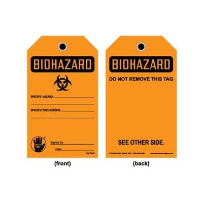Essential for any medical facility or lab environment, use Biohazard Tags to mark containers that hold viable biologically hazardous agents and warn employees of infectious agents. All Biohazard Tags are OSHA compliant.
