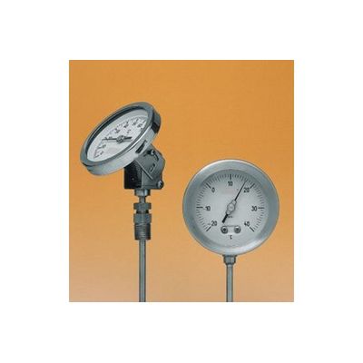 Thermometers completely in stainless steel for any kind of industrial applications; they are suitable for chemical, pharmaceutical and food industry and in any hard conditions with corrosive substances. They are formed by a stailess steel tube in which there is a bimetal helical spiral that gets deformed under temperature variations. DIAL SIZE (DS): mm 80 – 100 – 150. CASE AND RING: AISI 304 stainless steel with bayonet clutch Range: from – 50/50 to 0/500 °C.