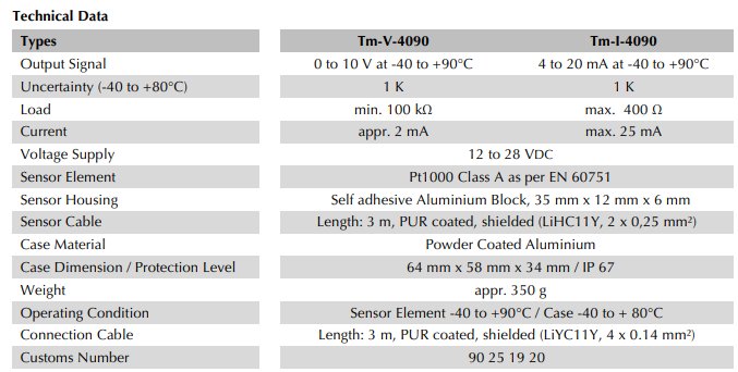 Model Tm-V-4090 and Tm-I-4090 -Module Temperature Sensor with analog Output