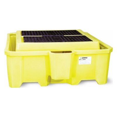 Fits more than 99% of all IBC dispensing units. Features a large sump capacity of 385 gallons. Comes with an integrated 5-gallon pail holder for quick and easy dispensing. One piece, lightweight, 100% polyethylene. Forkliftable and nestable for convenient shipment and storage. Will not rust or corrode or have adverse reactions with chemicals. Optional drain available.