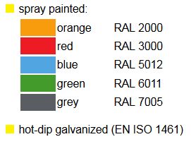 - 2 swivel + 2 fixed polyamide castors Ø 180 mm, one swivel castor with brake - construction height 220 mm