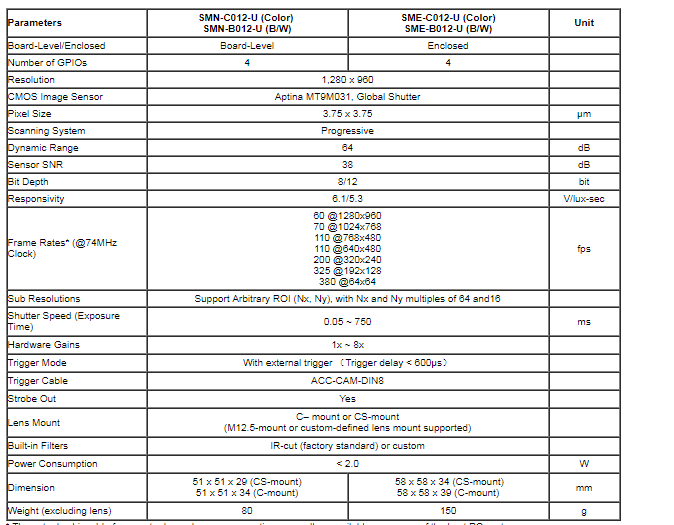 Model USB3.0 -Global Shutter CMOS Camera
