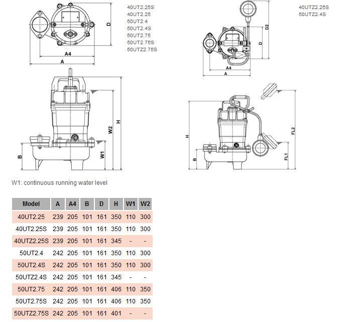 Model UT - 1-Phase / 3-Phase / 50Hz -Industrial & Wastewater Sewage Pumps