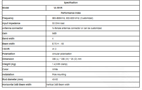 Model VA-991R 9 dBi -UHF RFID Antenna