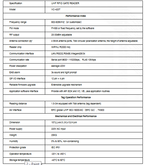 Model VC-420T -UHF RFID Gate Reader