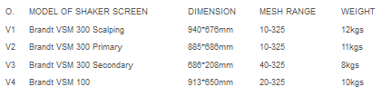 Brandt VSM300 Shale Shaker Screen main feature as follows :