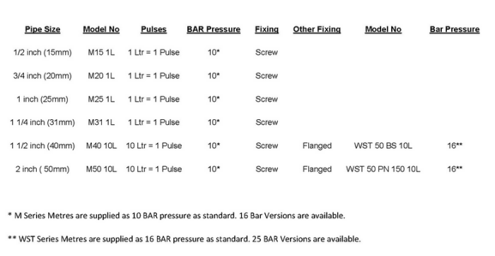 for the new building must be connected to the existing BMS. Below is our standard range of Pulse Flow Meters