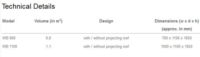 The perfect choice when only small quantities of material accumulate or when there are restrictions on space. The standard boxes have a volume of 0.8 or 1.1 m3 and can be used to collect glass, paper or used textiles. The galvanized steel sheet construction can be fitted with a projecting roof to protect the throw-in area from the elements (available on request). Instead of supporting feet, opt for wheels to make the unit mobile. The 0.8 m³ box can pass through a doorway.