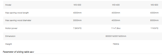 The sliding table saw can be customized for two operating modes, CNC or manual, according to customer needs, and can also be equipped with movable wheels to facilitate outdoor operations. The structure of the sliding table saw is different from the above two band saws. It no longer uses a band saw blade for cutting, but directly uses two hard bands saw wheels for cutting. The cutting range of the sliding table saw is the diameter of the band saw wheel, which is more suitable for some small wood processing plants.