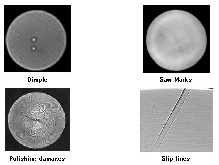 Inspection size 4 inch dia. To 12inch dia. Applicable defects Flatness, Dimple, Mound Saw Mark, orange peel and others Magnification 1 and 3X comes as standard Sensitivity Adjustable sensitivity Light source 550nm constant light intensity control Camera High Resolution CCD camera Stage Manual stage (standard).
